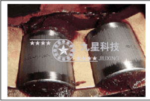 這種高頻電壓施加在電機上繞組后,就會通過繞組與軸桿之間的雜散電容流到軸桿上,然后再經(jīng)過軸承流到地上,形成軸承電流。這種電流也稱為共模電流。電流流過軸承時,由于軸桿與軸瓦之間的有絕緣的潤滑油,高速旋轉時,軸承內的導電通路時通時斷,引起電火花(就象接觸式開關接通和斷開的瞬間產(chǎn)生的弧光一樣),電火花的燒蝕導致軸承損壞,如圖2所示。