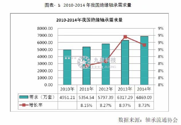 由于全球電機(jī)行業(yè)的持續(xù)發(fā)展,國(guó)際市場(chǎng)對(duì)絕緣軸承的需求增長(zhǎng)較快。以下為2010-2014年國(guó)際市場(chǎng)絕緣軸承需求變化: