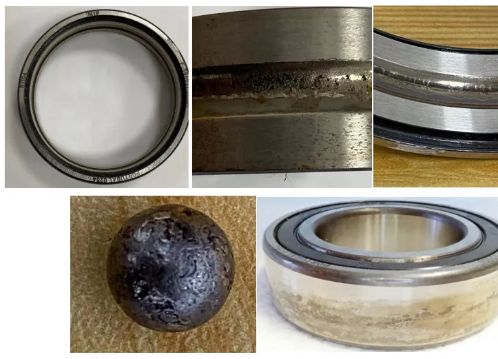 當(dāng)軸電壓大小尚無法擊穿油膜的情況下,不會產(chǎn)生軸電流,也不會產(chǎn)生軸電流對軸承的腐蝕。但有可能在潤滑油中放電,一段時(shí)間后會導(dǎo)致油脂的變質(zhì)失效。