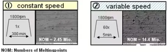 變速跑狀態(tài)下電機(jī)軸承電腐蝕點(diǎn)數(shù)量是勻速跑的5.88倍。